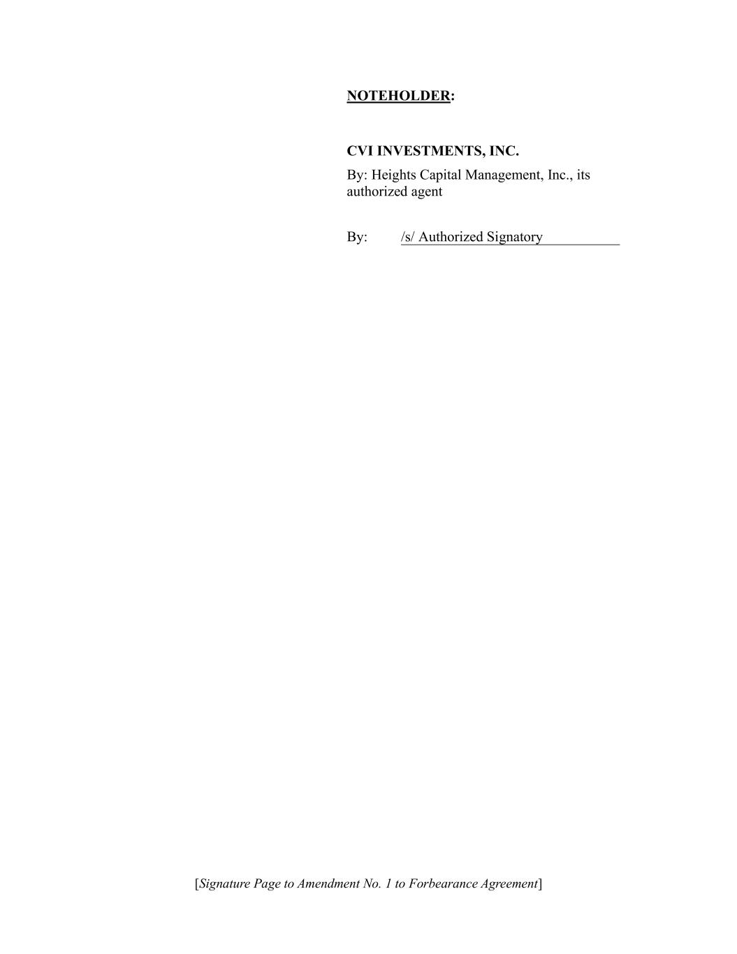 [Signature Page to Amendment No. 1 to Forbearance Agreement] NOTEHOLDER: CVI INVESTMENTS, INC. By: Heights Capital Management, Inc., its authorized agent By: /s/ Authorized Signatory