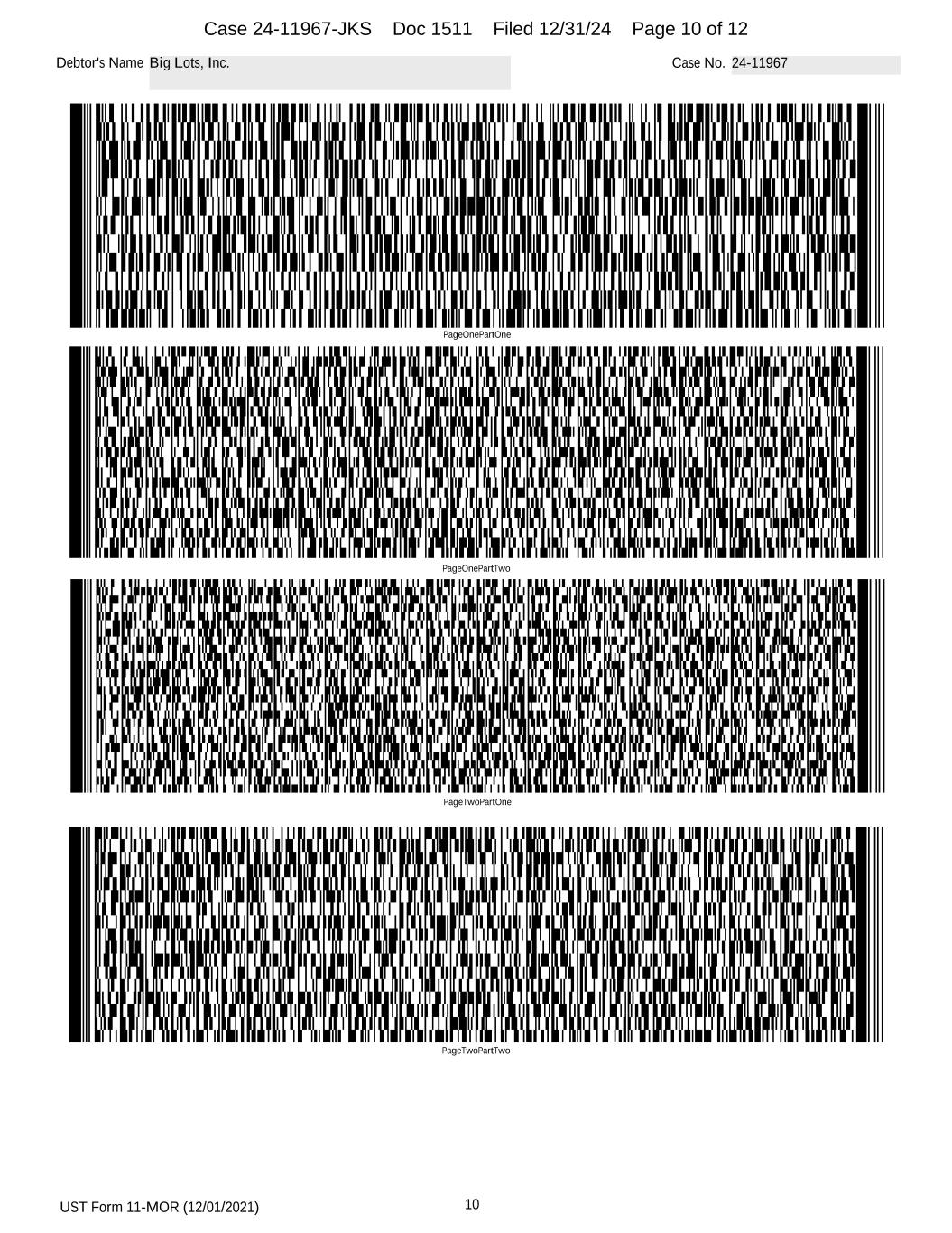 UST Form 11-MOR (12/01/2021) 10 Debtor's Name Big Lots, Inc. Case No. 24-11967 PageOnePartOne PageOnePartTwo PageTwoPartOne PageTwoPartTwo Case 24-11967-JKS Doc 1511 Filed 12/31/24 Page 10 of 12