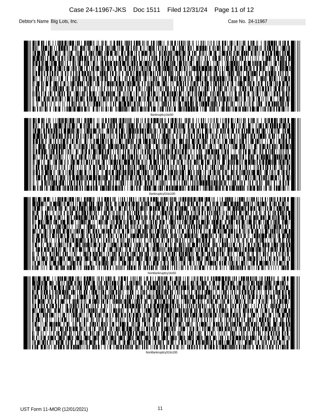 UST Form 11-MOR (12/01/2021) 11 Debtor's Name Big Lots, Inc. Case No. 24-11967 Bankruptcy51to100 NonBankruptcy1to50 NonBankruptcy51to100 Bankruptcy1to50 Case 24-11967-JKS Doc 1511 Filed 12/31/24 Page 11 of 12