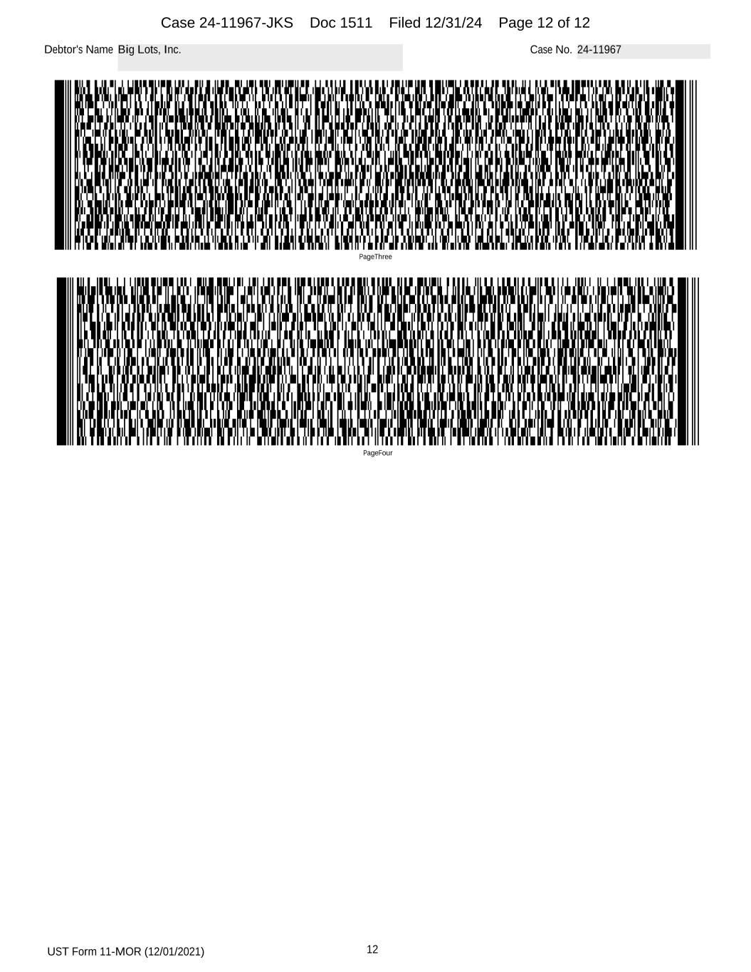 UST Form 11-MOR (12/01/2021) 12 Debtor's Name Big Lots, Inc. Case No. 24-11967 PageFour PageThree Case 24-11967-JKS Doc 1511 Filed 12/31/24 Page 12 of 12